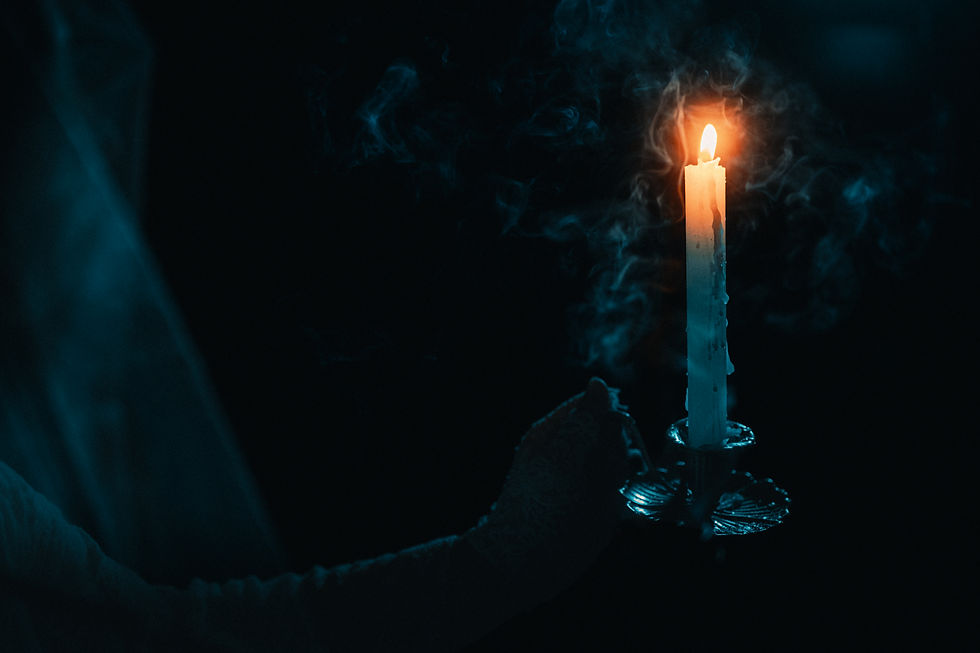Chelsea and I collaborated on a Victorian-inspired ghost photoshoot, drawing influence from 19th-century spirit photography. The images were created using a single RGB light, natural candlelight, and a black mist filter to produce a soft, ethereal atmosphere.